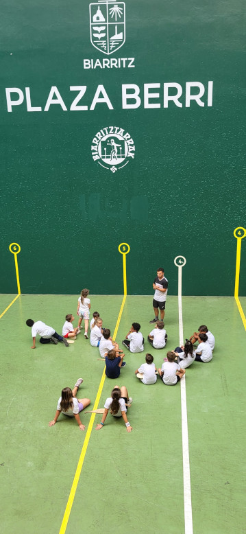 La dernière séance de l\’école de pelote s\’est déroulée vendredi 30 juin à Plaza Berri. L\’occasion pour Oihan Borteyru, l\’éducateur, d\’organiser un petit tournoi à pala. Chaque enfant recevait des mains de Carole Suhas, responsable de la section féminine de Biarritztarrak, un maillot du club. A l\’issue, un goûter récompensait les pilotaris en herbe ainsi que leurs parents. Bonnes vacances à tous et à l\’année prochaine.